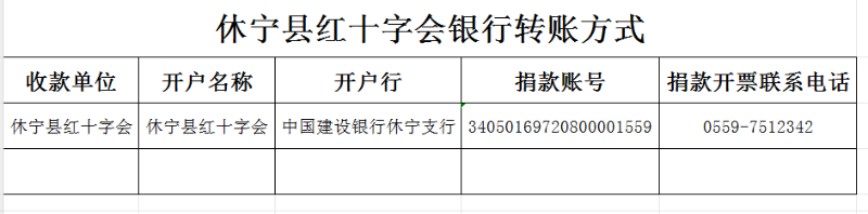 休宁县红十字会银行转账方式