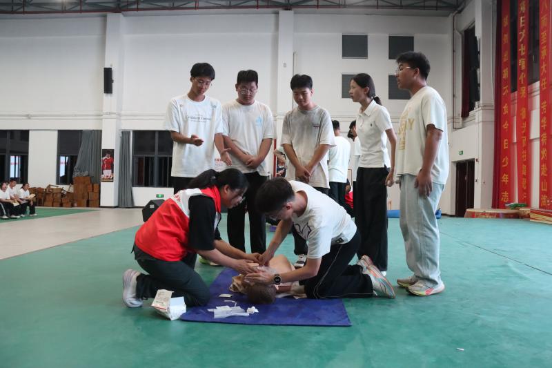 理论讲解后,最受同学们欢迎的实操环节随即展开。讲师们利用模拟人、急救包等教具,现场演示了心肺复苏的按压部位、深度、频率,以及开放气道、人工呼吸的正确方法,手把手指导同学们进行练习。“按压时要双手交叉,用掌根发力,垂直向下按压 30 次,再做 2 次人工呼吸……”。