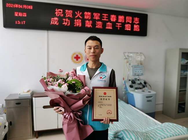 王春鹏是火箭军某部作战保障部队的一名战士。2013年,在单位组织的一次献血中,他加入中华骨髓库,成为一名志愿者。