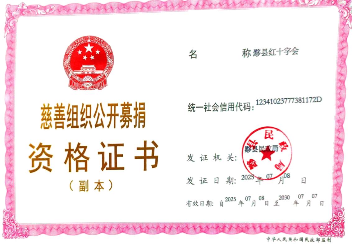 黟县红十字会募捐资格证书