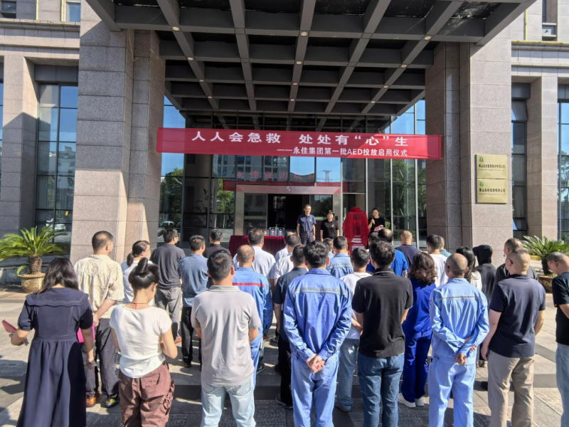 为构建更加安全健康的工作环境,完善集团应急救护保障体系,9月22日上午,黄山永佳集团开展“人人会急救,处处有‘心’生”首批AED(自动体外除颤器)投放启用仪式。徽州区红十字会常务副会长石丽玲、集团总经理汪鹏、集团总助邹韵红、各企业急救员代表参加启用仪式。