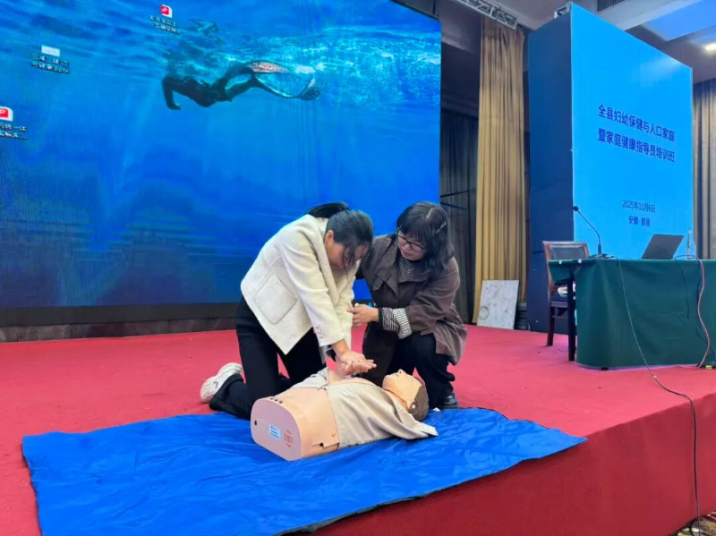 11月6日下午,歙县红十字会组织骨干师资团队赴歙县饭店,为全县乡村两级家庭健康指导员开展应急救护专题培训,以专业赋能助力筑牢乡村健康防护网。