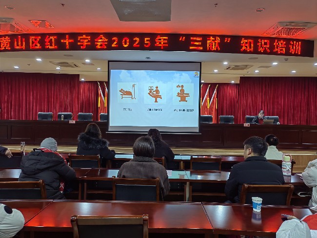 为进一步提升全区“三献”工作能力和服务水平,确保工作人员和志愿者掌握“三献”的法规政策、工作流程及沟通技巧,12月25日,黄山区红十字会开展2025年“三献”知识培训。黄山区红十字会第三届理事会理事、各乡镇红十字会工作人员及黄山区红十字“三献”宣传志愿服务队志愿者共计60余人参加培训。