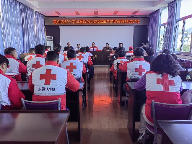 聚人道之力,启志愿新程。12月27日,黄山区红十字志愿服务大队召开2025年年终总结表彰会。黄山区红十字阳光救援队、黄山区红十字“三献”宣传志愿服务队40多名志愿者代表参加会议,黄山区红十字会党组成员周光明参加会议并讲话。