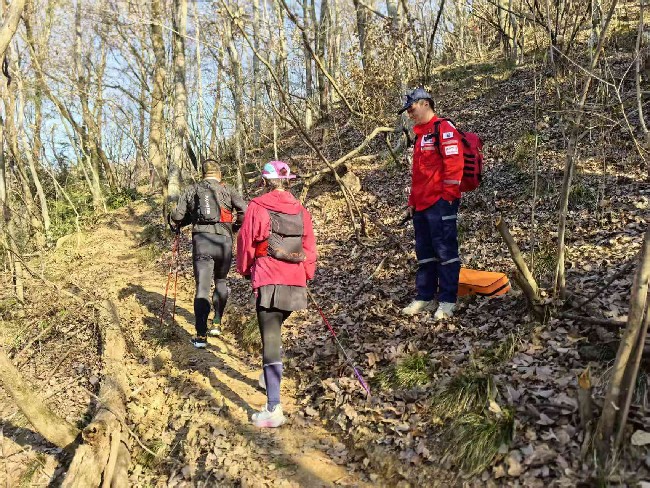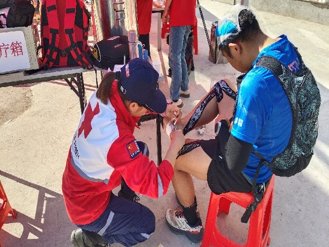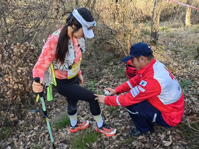 在赛事保障期间,由于赛道复杂,给参赛选手带来不小挑战的同时,也增加了赛事保障工作的难度。队员们始终保持高度警惕,密切关注运动员的身体状况与行进动态,及时提供精准帮助。据不完全统计,队员们累计为运动员提供各类服务50余次,其中因为山路原因,面对运动员因高强度运动出现的腿抽筋,队员们熟练运用拉伸手法进行缓解;对于山野碎石、枝条造成的擦划伤,队员们迅速进行消毒包扎。以专业的处置与贴心的关怀,成为赛道上一道温暖而坚实的风景。