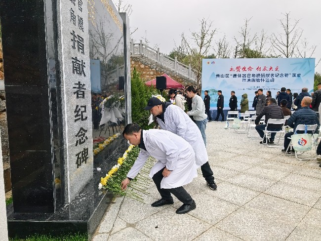 以生命之碑铭刻人间大爱!为深切缅怀遗体器官捐献者,弘扬“人道、博爱、奉献”的红十字精神,3月31日上午,“礼赞生命・传承大爱”——黄山区“遗体器官角膜捐献者纪念碑”落成仪式暨清明缅怀纪念活动在黄山太平陵园庄严举行