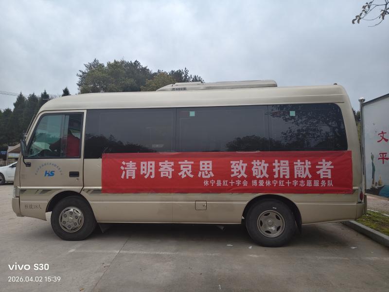 又是一年清明至,缅怀追思寄深情。在清明节来临之际,为深切缅怀革命先烈的丰功伟绩,致敬遗体器官角膜捐献者的无私善举,大力弘扬“人道、博爱、奉献”的红十字精神,4月2日,休宁县红十字会组织博爱休宁红十字志愿服务队志愿者,乘坐悬挂有“清明寄哀思 致敬捐献者”醒目横幅的定制中巴车,前往黄山市徽陵公墓开展主题缅怀活动,以庄重仪式缅怀英烈、致敬生命馈赠者,让清明时节更添温情与敬意。