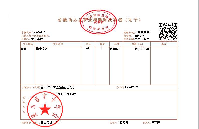 黄山市红十字会爱心市民捐款5月合并开票公示