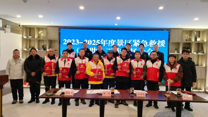 会上,景区红十字会全面回顾了过去三年工作成效:联合景区相关单位开展应急救护培训百余场,实现一线员工持证救护员覆盖率显著提升;推动AED等急救设备在核心景区、人流密集区域基本覆盖,构建起“10分钟急救服务圈”雏形;动员组建红十字志愿应急救援队,吸纳热心游客参与应急救护,形成“专业力量+志愿力量”的救援格局。其中,7起心脏骤停游客经红十字救护员及时施救转危为安的案例,生动诠释了人道救援的关键价值,彰显了景区应急救护体系的实战效能。