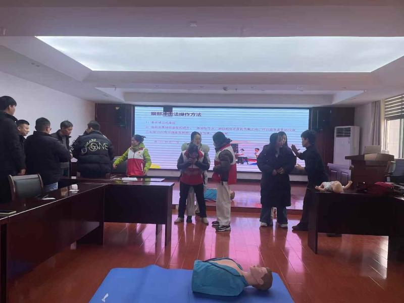“双手交叉按压胸骨中下段,频率每分钟100-120次,深度5-6厘米,按压后回弹……”近日,县卫生健康大楼8楼会议室内,县红十字会资深讲师和助教团队正手把手指导参训人员进行心肺复苏(CPR)实操训练。为进一步提高机关干部的应急救护意识,强化广大干部职工的应急救护技能,县红十字会为县委办党员干部开展普及性应急救护培训。