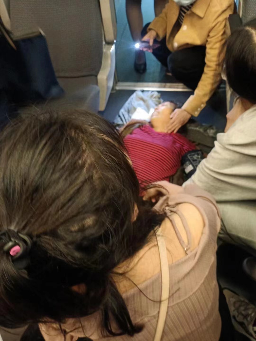 近日,在杭黄高铁D9527次列车上,一名中年妇女突然突然倒地,危急关头,同乘该车次的黄山市红十字人道传播志愿服务队队长、红十字救护员方勇强挺身而出、紧急施救,将其从死神手中抢救回来。