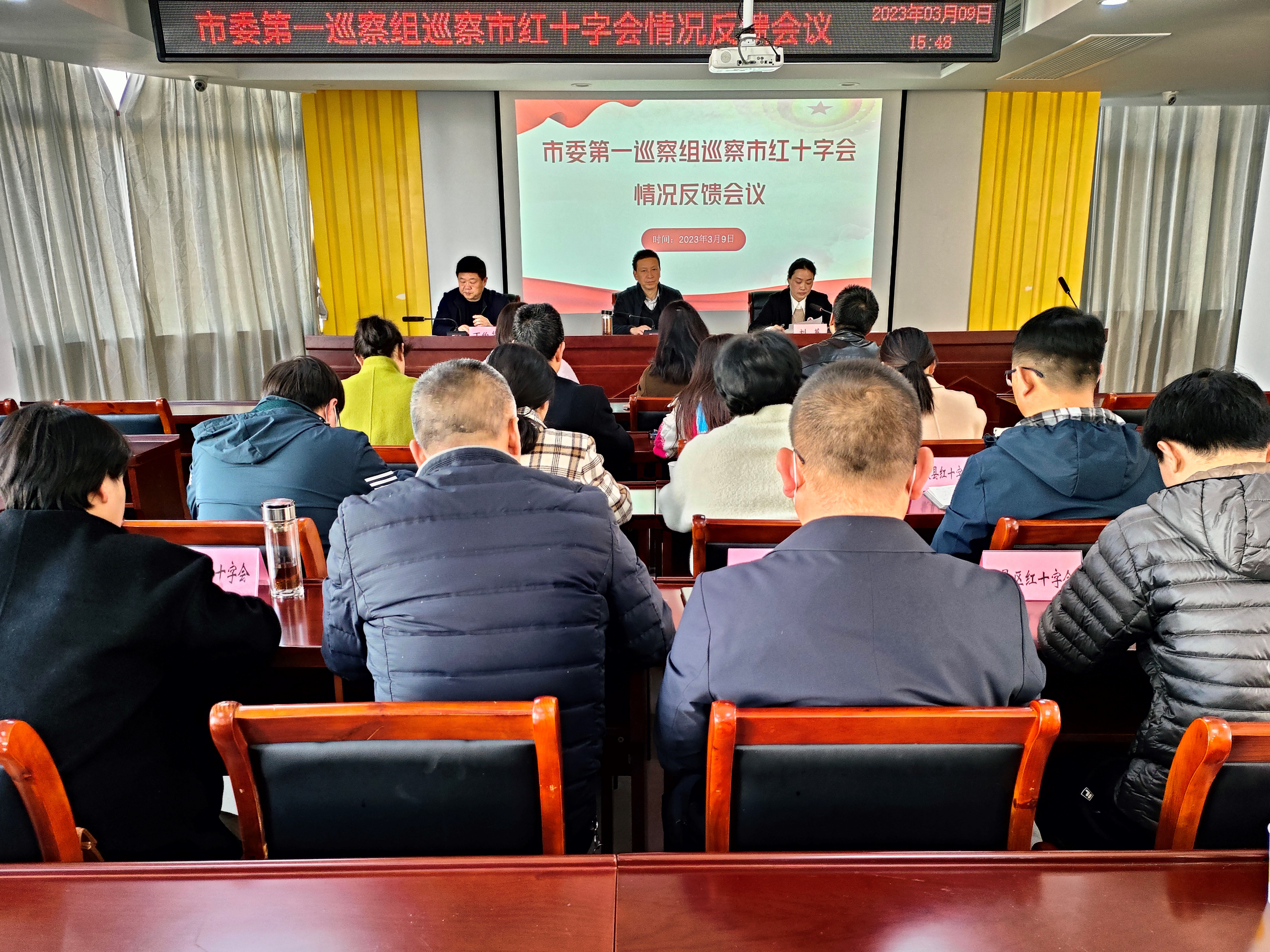 市委第一巡察组有关成员出席会议;各区县红十字会驻会主要负责人,市红十字会机关全体干部职工参加会议。