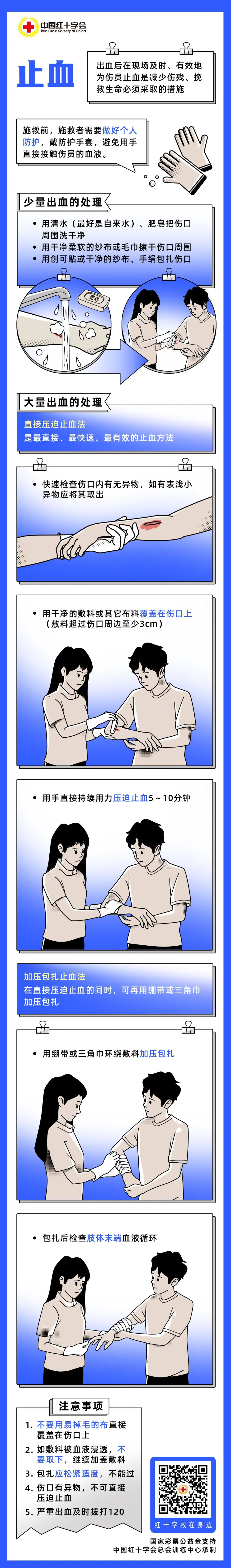 在日常生活中,创伤常常会引起出血,无论是因为轻微擦伤、割伤造成的少量出血,还是严重事故造成的大量出血,我们都要及时、正确、有效地止血。